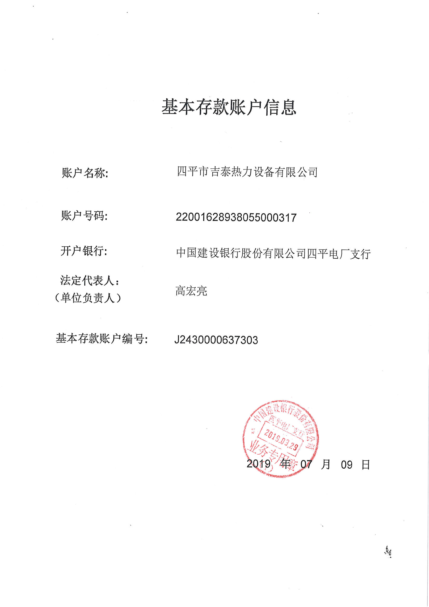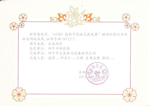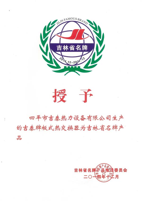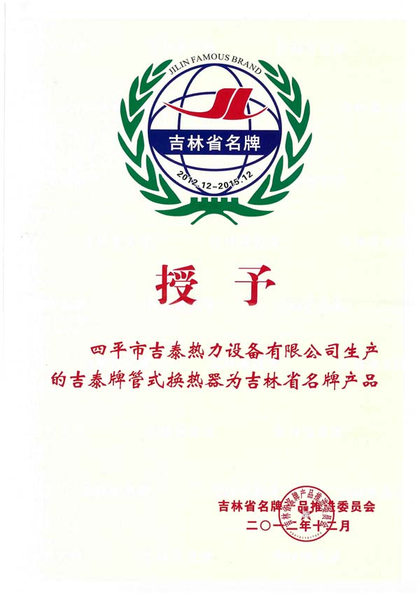 SIPING JITAI HEAT EXCHANGE EQUIPMENT CO.,LTD. 四平市吉泰熱力設(shè)備有限公司
